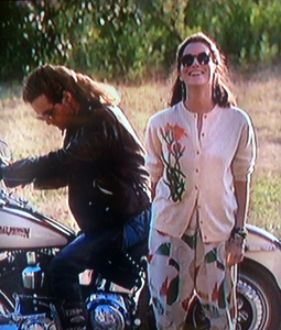 Forget the leather chaps. Floral embroidered cardigans and printed balloon pants create the ultimate church-lady-biker look. Notice how she rebelliously buttoned only 3 buttons in the center of her cardigan. This helps her keep a classy image while still being a little rough and tough. She’s ready to get on that motorcycle with her mysterious Australian lover and haul ass to Sears!
