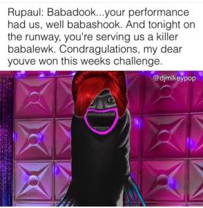 Writing about memes is silly business. By the time I publish this piece, it will have been well over a week since the story of the Babadook’s strange path to becoming an LGBTQ icon peaked, which in internet terms is a relative eternity. It’s still a funny story, though. Reportedly, a Netflix user noticed that the Jennifer Kent-directed instant cult classic horror The Babadook had been mistakenly filed under the LGBTQ Cinema category on the site’s streaming service. Users across social media platforms like Tumblr & Twitter then ran with the mistake, declaring the Babadook to be a gay icon. There has since been an immeasurable flood of memes inserting the Babadook into rainbow flag backdrops, stills from RuPaul’s Drag Race, and any other queer spaces that could easily be ‘Dooked. There have even been in-the-flesh sightings of the Babadook at Pride parades and the filming of the Drag Race finale. It’s been a bizarrely fun way to kick off 2017’s Pride Month celebrations and, unlike most memes, I hope this one never dies.