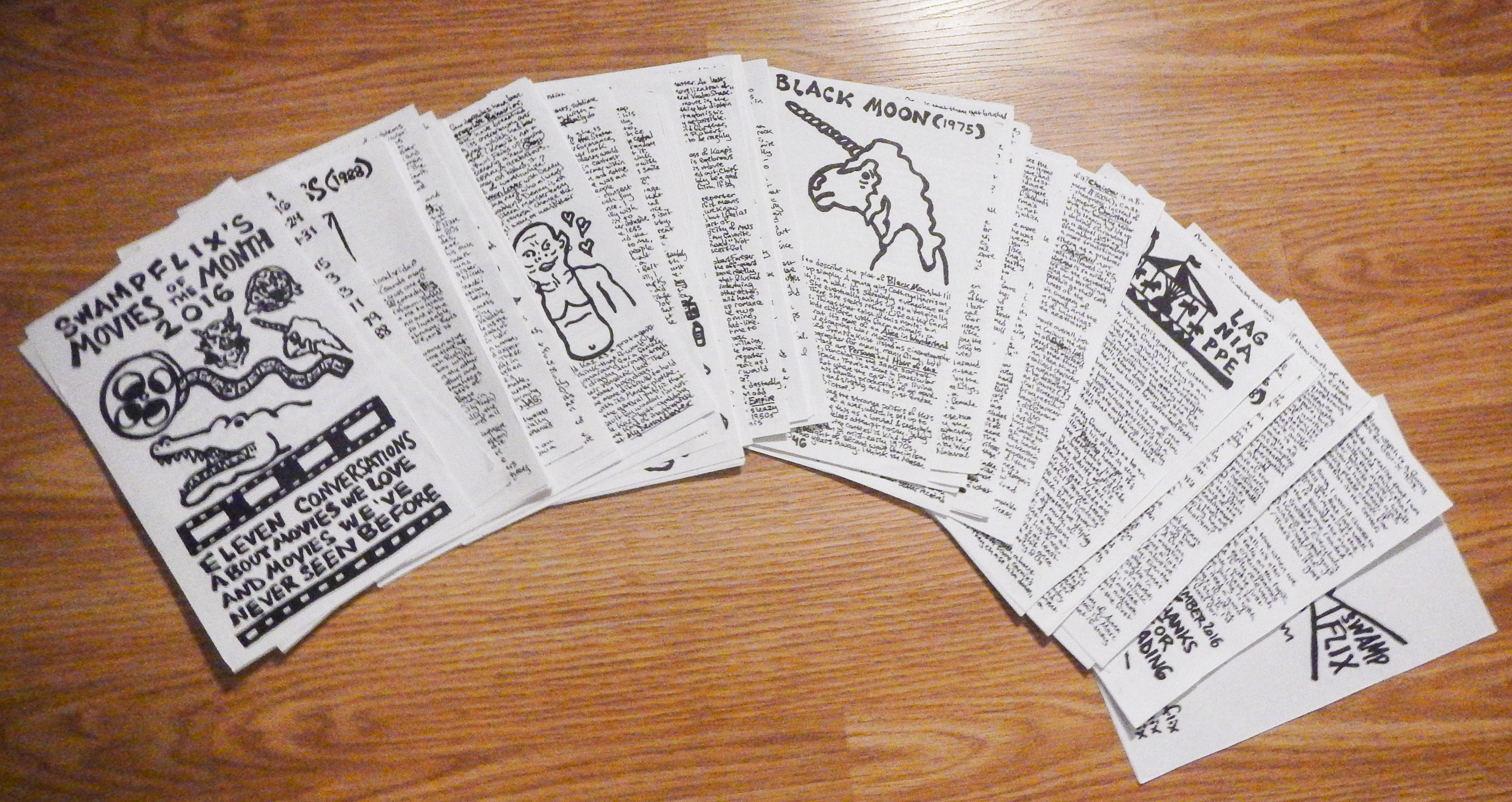 Attention, Swampflix readers in the New Orleans area! We will be exhibiting this Saturday (November 18th) & Sunday (November 19th) at the fourth annual New Orleans Comics & Zines Festival along with a bunch of other super cool comics & zines exhibitors. For this year’s festival we made a massive print version of the entirety of last year’s Movie of the Month conversations.