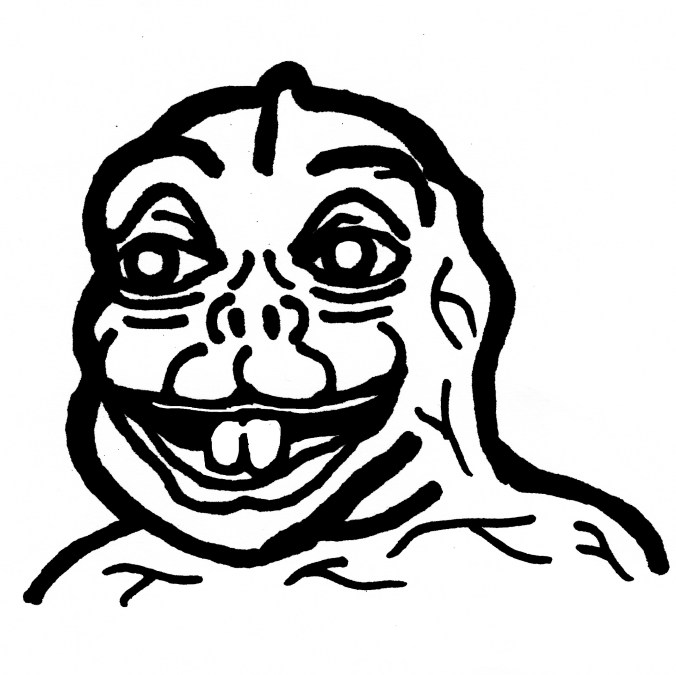Godzilla’s titular offspring in the 1967 kaiju comedy Son of Godzilla doesn’t officially have a name, or at least he didn’t yet. Between the film’s release and the character’s return in the following year’s Destroy All Monsters, Toho held a contest for Godzilla fans to name the reptilian tyke, and the world settled on the name “Minilla,” a portmanteau of “Mini” and “Godzilla”. In his initial appearance, however, he’s only referred to as “Baby Godzilla” by the humans on the ground gazing up at his towering, toddling glory. Minilla has gone on to become a viciously hated name within the larger, ongoing Godzilla fandom. He’s cited in online sources as Godzilla’s “adopted son,” but I’m not sure that his initial appearance backs that detail up either. In Son of Godzilla, Baby Godzilla is prematurely hatched from a mysterious egg when his nest is discovered by gigantic mantises (Kamakuras) looking for an easy meal. Before he can gather the strength to flee, he is immediately rescued by Godzilla, who is summoned by his pathetic cries for help. There is no appearance or mention of a mother figure who might have laid that egg, but the scientists & freelance reporter watching from the ground all immediately refer to Godzilla as the pitiful creature’s father. The King of Monsters takes on that responsibility with enough gusto that the question of their biological relation is beside the point. Godzilla teaches Baby Godzilla how to breathe fire and how to rule over the giant bugs that infest the small island where he hatched, like a dad teaching his son how to play catch or how to change a car’s engine oil. It’s all very cute, assuming that you can stand looking directly at the mini-Godzilla’s craggly face.