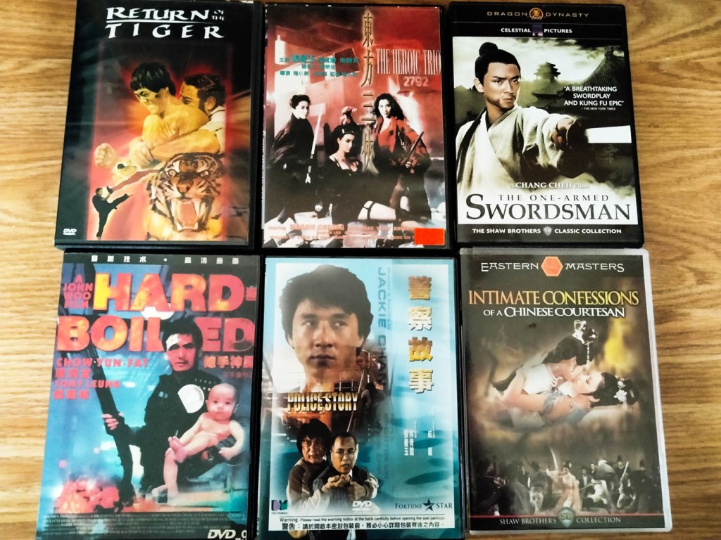I recently read an encyclopedia of classic Hong Kong action movies titled Sex and Zen & A Bullet in the Head, which is overloaded with hundreds of capsule reviews of the once-vibrant industry’s greatest hits.  Each blurb makes each title sound like the most explosively badass movie you’ve never seen, fixating on the industry’s unmatched talent for absurd plot details, tactile fight choreography, and for-their-own-sake visual gags.  It’s a daunting surplus of giddy movie recommendations, with no real guide for what to prioritize besides whatever happens to be available to access.  After being pushed to check out the bonkers Indiana Jones mutation The Seventh Curse by the We Love to Watch podcast crew, I had no clear path for where to go next.  Thankfully, that decision was taken out of my hands by happenstance.  I lucked into a small haul of Hong Kong action DVDs (some bootlegs, some official releases, all pictured below) during a recent trip to Goodwill, which included the 1993 superhero oddity The Heroic Trio.  This was the same week that Criterion announced an upcoming Blu-ray release of The Heroic Trio and the same month that one of its stars, Michele Yeoh, was gifted a career-high acting showcase in the Daniels’ own novelty superhero picture Everything Everywhere All at Once, which made it the most obvious must-see.  I’m often overwhelmed deciding what movie to watch next when I’m left to my own devices, so it’s always a pleasure when the universe steps in to program that selection for me.