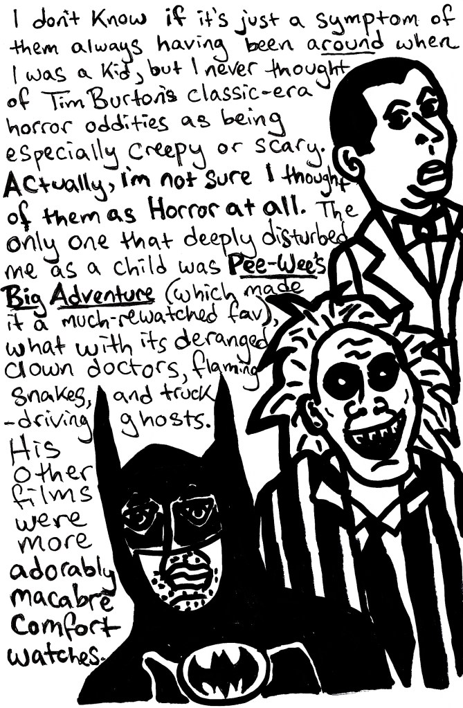 In short, Corpse Bride looks great. All of the visual artistry that distinguishes The Nightmare Before Christmas as a holiday classic is echoed here without any lost integrity. The worst you could say about it is that Burton borrows a little too freely from former collaborator Henry Selick in the production design, to the point where the underworld afterlife setting appears to be pulled from the live-action sets of Selick’s Monkeybone, entirely separate from the film’s production overlap with Nightmare. If I were Selick, I might be complaining, but as an audience member, I’m more than happy to spend time with the cartoon gals & ghouls in that underground otherworld where every day is Halloween. Much like in earlier auteurist works like Batman Returns, Edward Scissorhands, and Ed Wood, Burton conveys a yearning desire to party with the undead freaks of the underworld instead of being stuck with the drab drips of the living flesh. Johnny Depp & Emily Watson voice a soon-to-be-married couple of awkward strangers who’ve had all the joy of life strangled out of them by their uptight, aristocratic parents. They seem to be instantly, genuinely fond of one another despite the grim-grey world they sulk in together, but tragedy strikes when the groom accidentally marries an animated corpse instead while practicing his vows in the spooky woods outside town. The titular undead bride (Helena Bonham Carter, duh) drags the poor, nervous lad down to her Halloweentown underworld where he’s forced to party with the lively dead instead of moping among the dead-eyed living. Song & dance and comedic antics ensue, ultimately resulting in a tender-hearted reunion for the rightful bride & groom and a cosmic comeuppance for the dastardly cad who sent the Corpse Bride underground in the first place. It’s wonderful kids-horror fare, especially if your particular kid has already re-run Coraline & ParaNorman so many times that you’ve become numb to their Laika-proper charms.