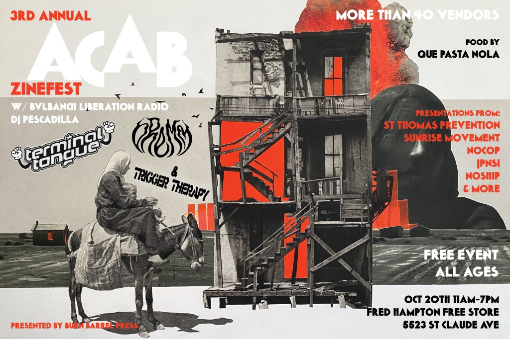 The New Orleans Bookfair will take place on Saturday, December 6, from 11am-5pm at The Fred Hampton Free Store (5523 St Claude Ave, New Orleans, LA 70117) in the 9th Ward.
